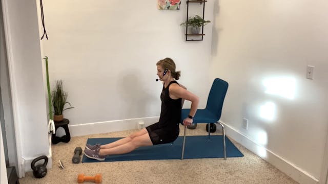 Equipment: chair and dumbbells and a versa loop.